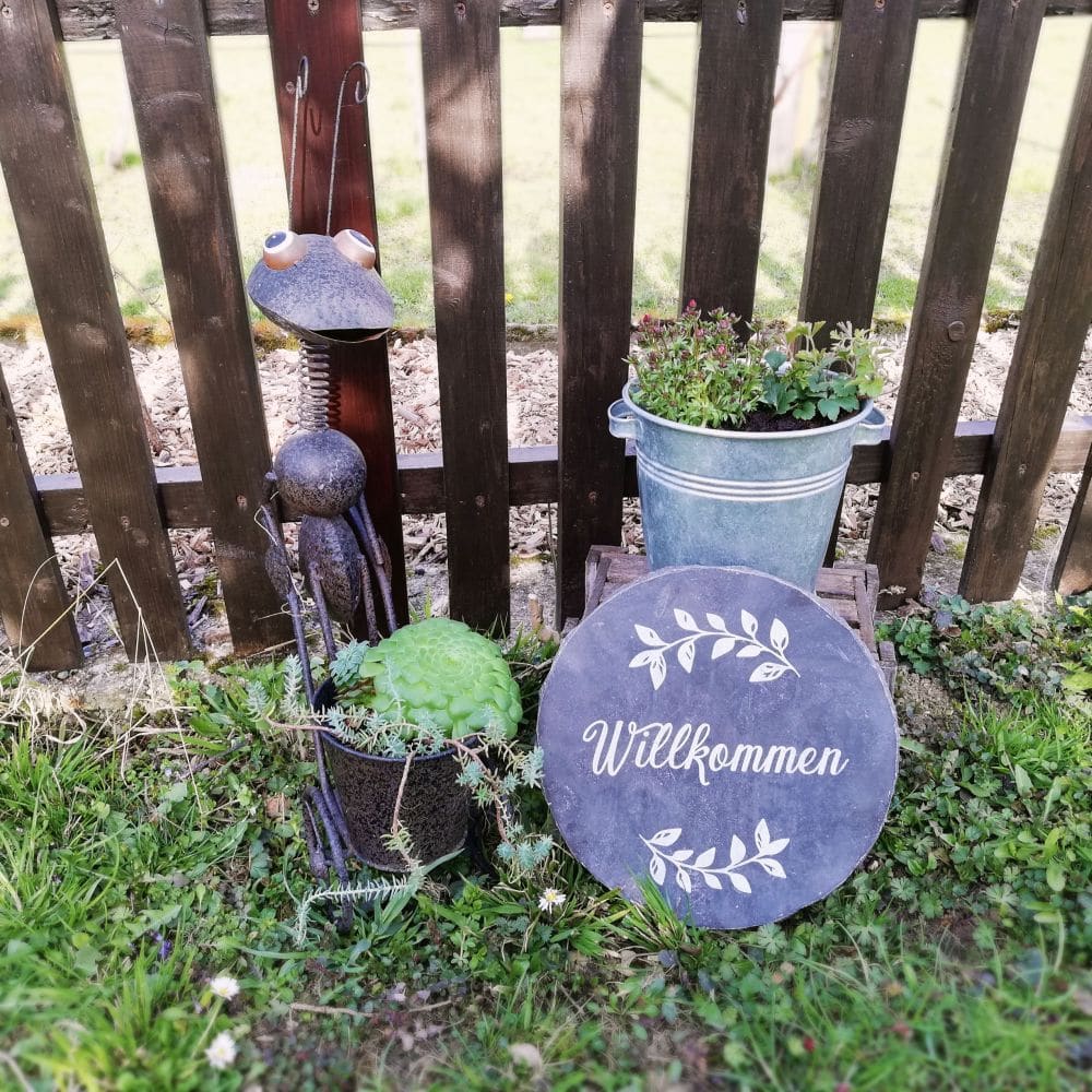 Perfekt geeignet als Willkommens-Stein vor der Haustüre, als Gartendeko oder auffälliger Wegweiser für Hochzeitsgesellschaften.